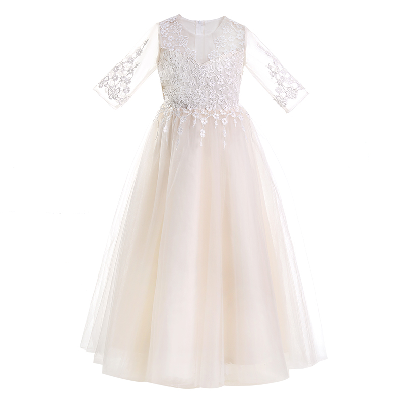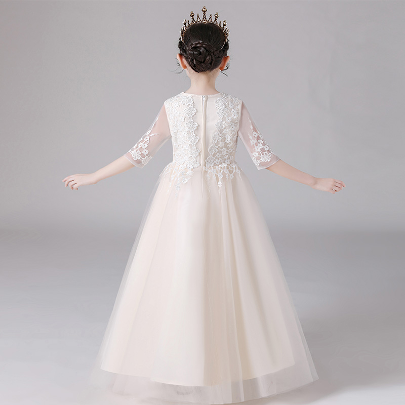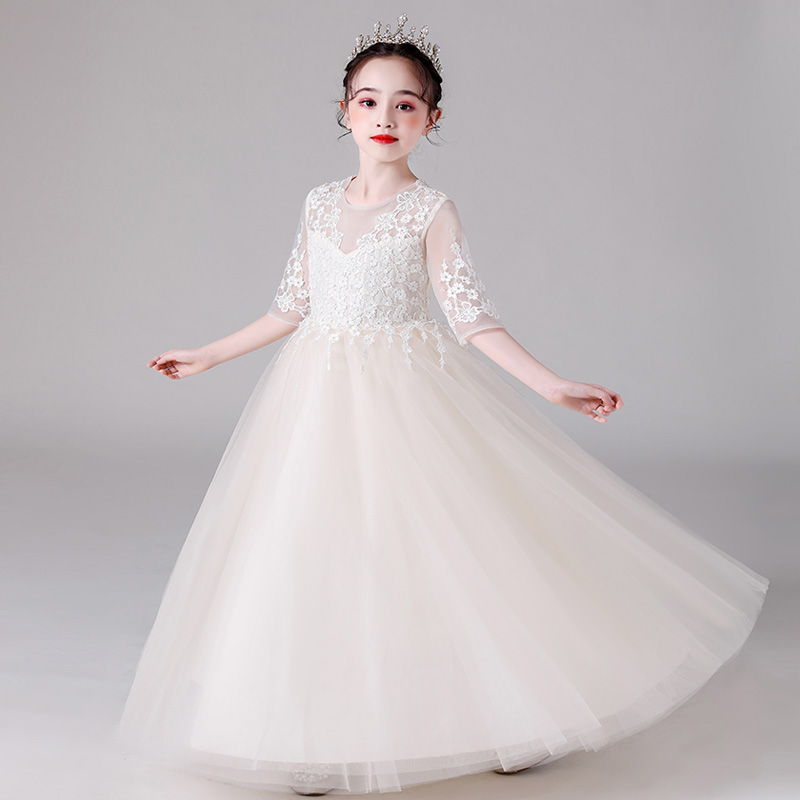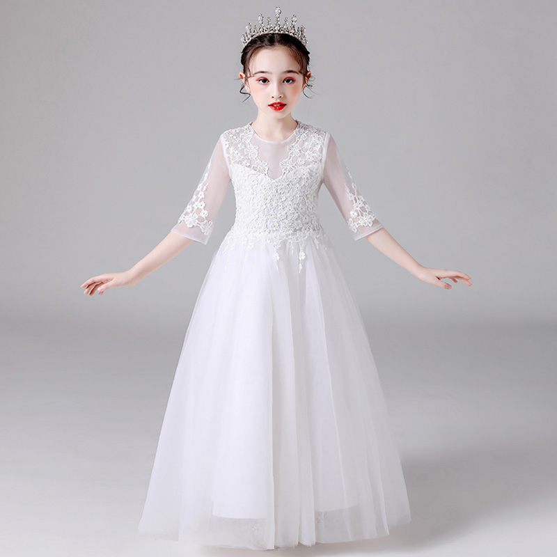 Girl's dress high-end children wedding flowers princess piano playing show white clothes hosted