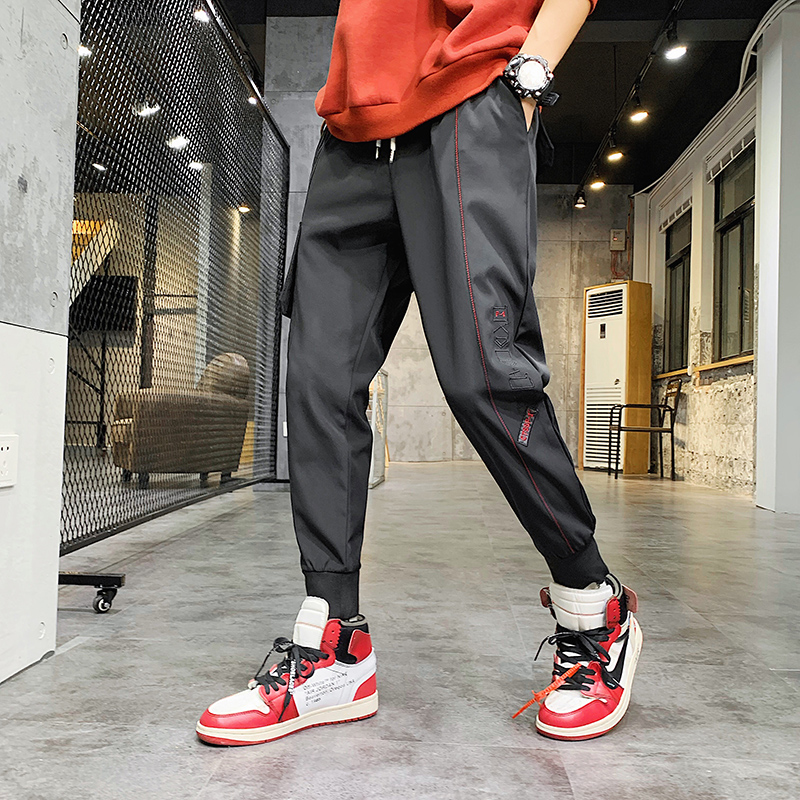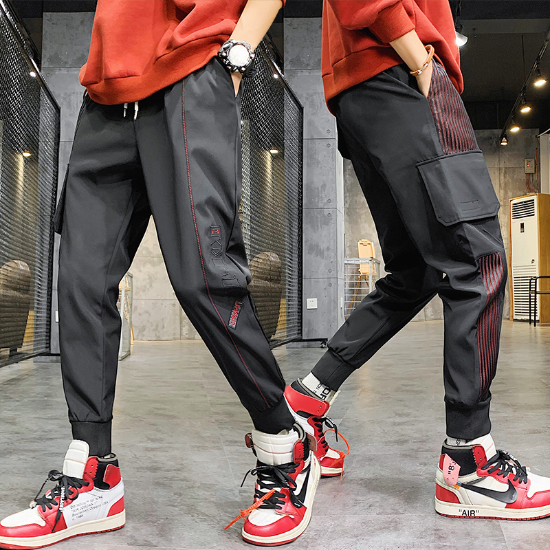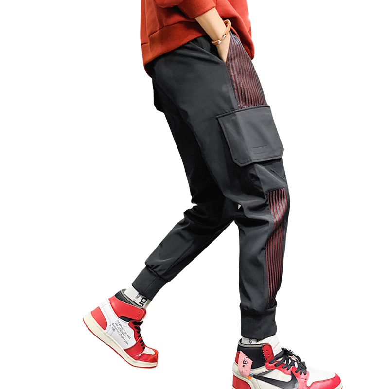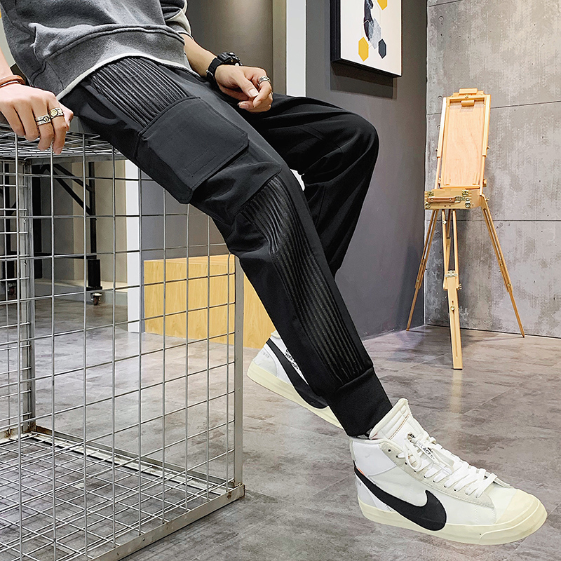 Tide Cards Casual Workwear Pants Men's Bunches Sports Multiple Pockets Trend Handsome Korean version Leisure 100 hitch Rope Smoke tubes pants