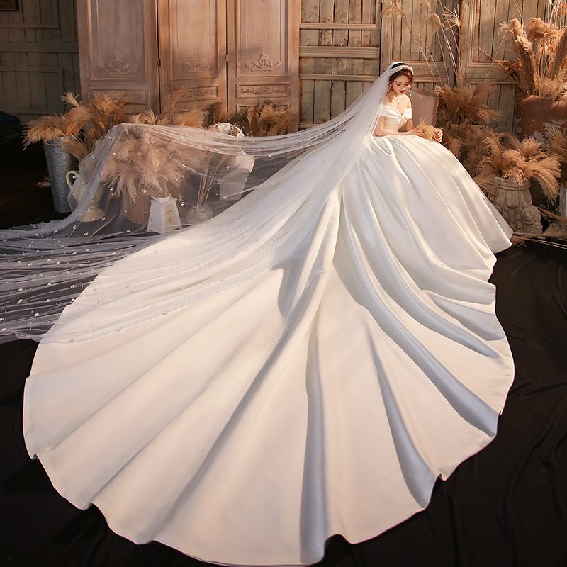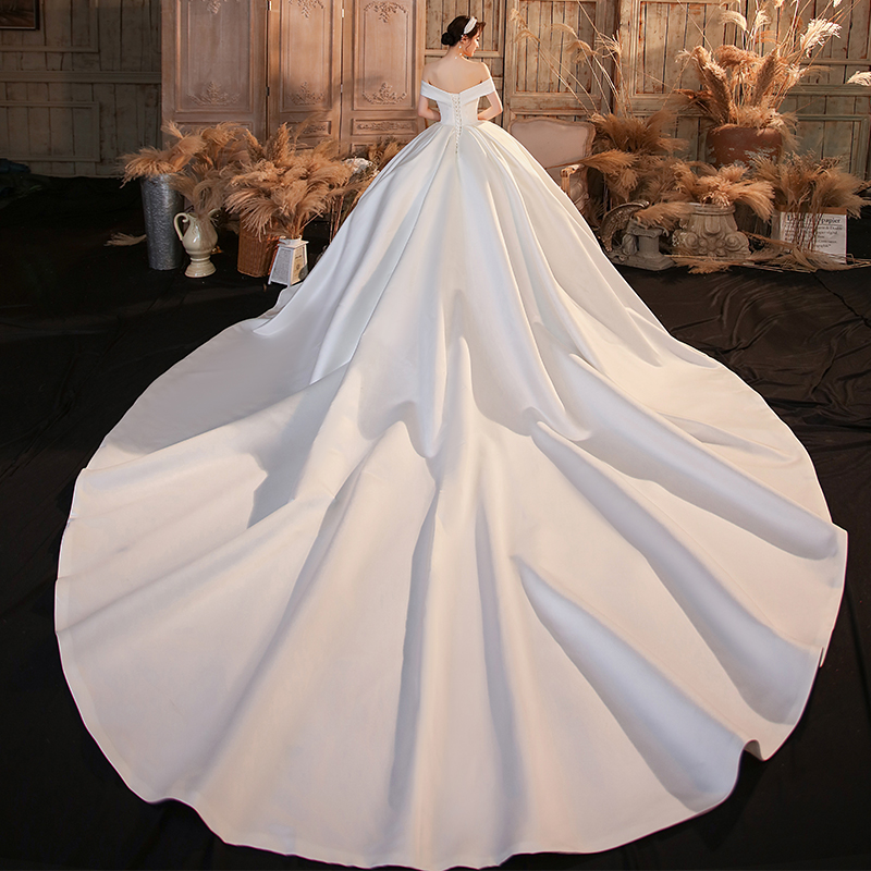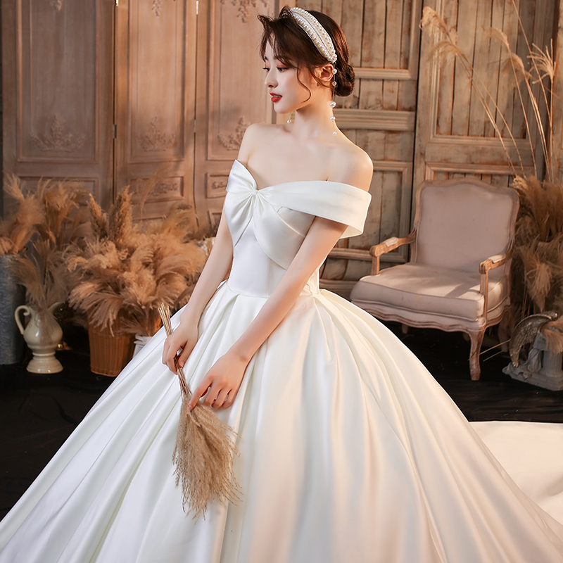 Word shoulder French satin light wedding dress 2022 new bridal main yarn high-grade texture satin simple retro qidi