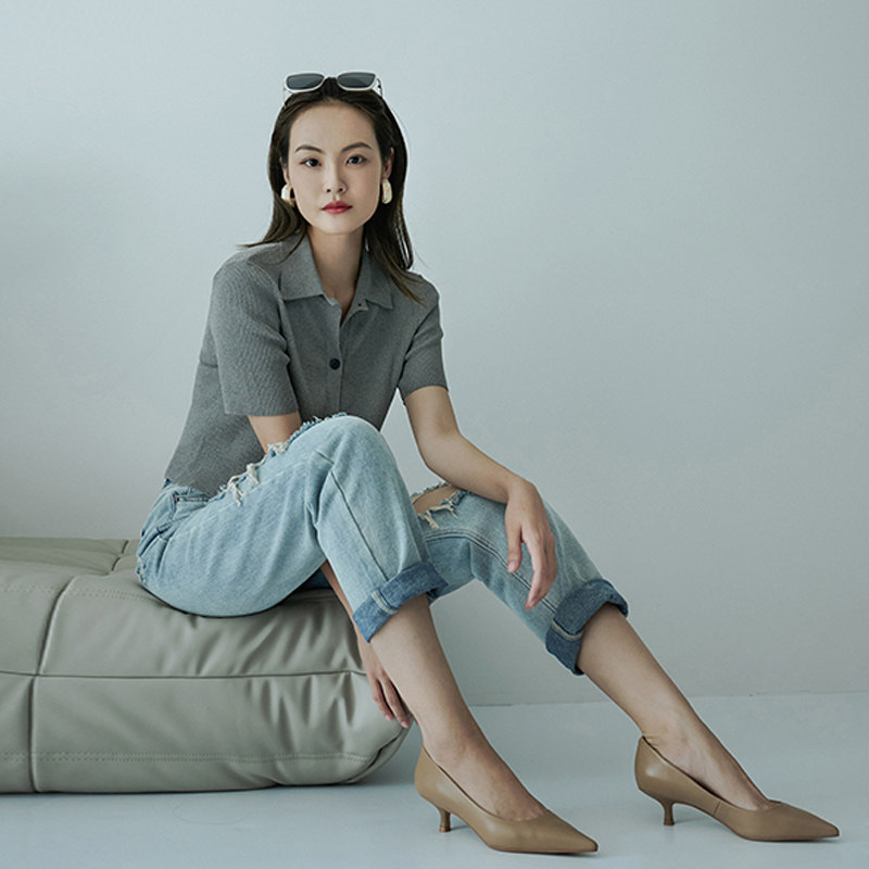 Meiyang MEIYANG (spot) such as flat life push nude leather elegant pointed toe 4-9cm high heels
