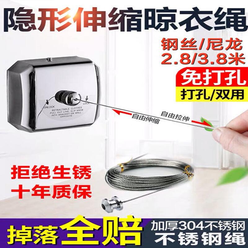 304 stainless steel invisible hole-free clothesline outdoor indoor retractable clothes drying artifact balcony drying rack