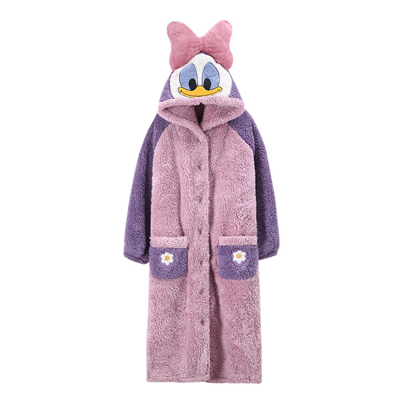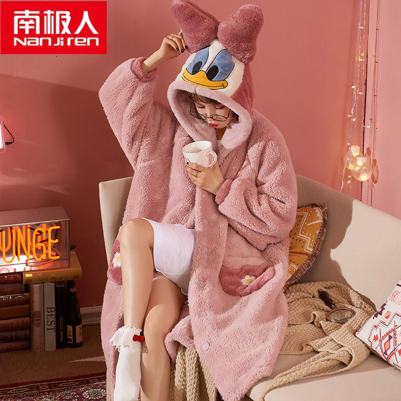 South Pole Winter Coral Suede Sleeping Robe Bathrobe Woman Autumn And Winter Cute Long Version Flannel Sleeping Dress Thickening Pyjamas Spring Autumn