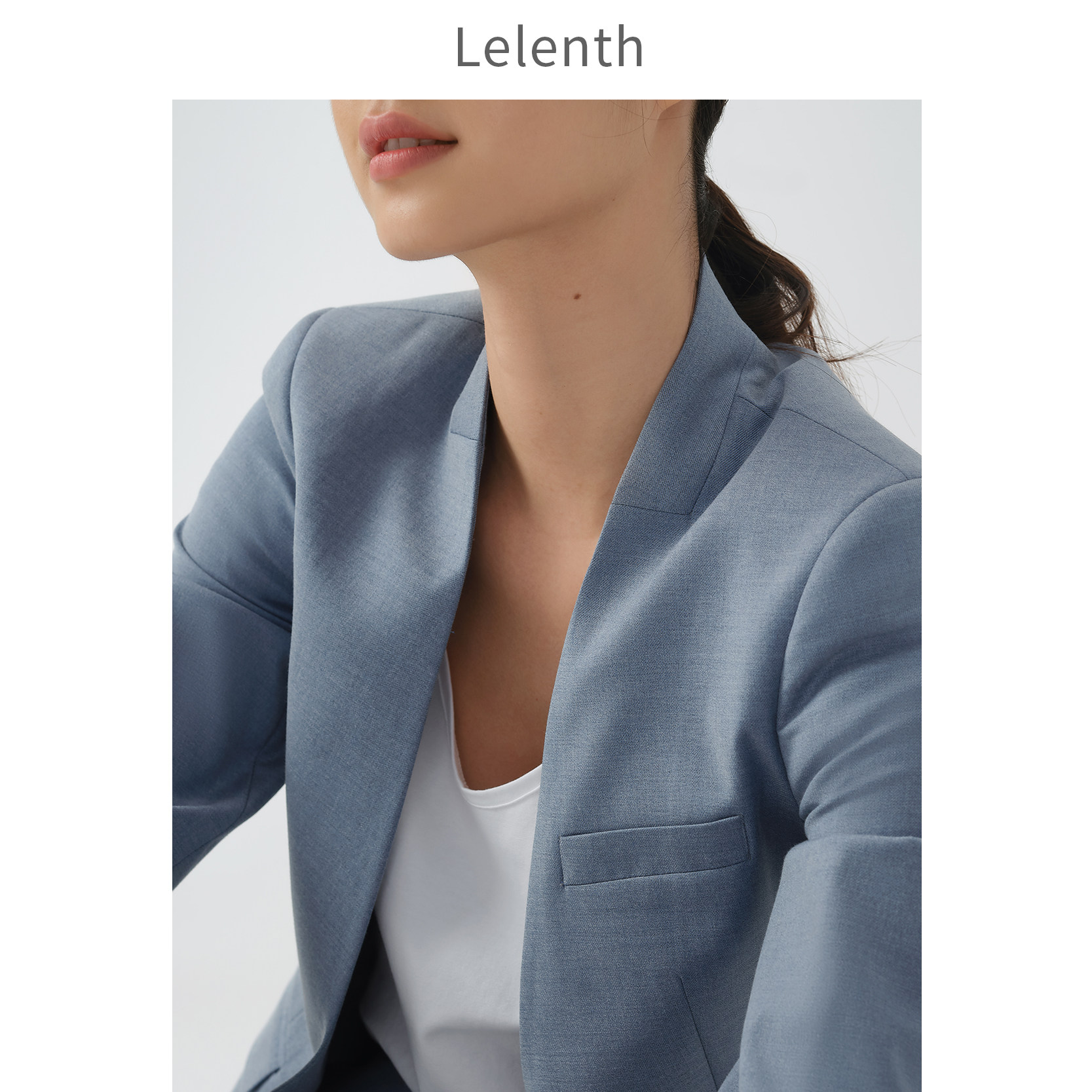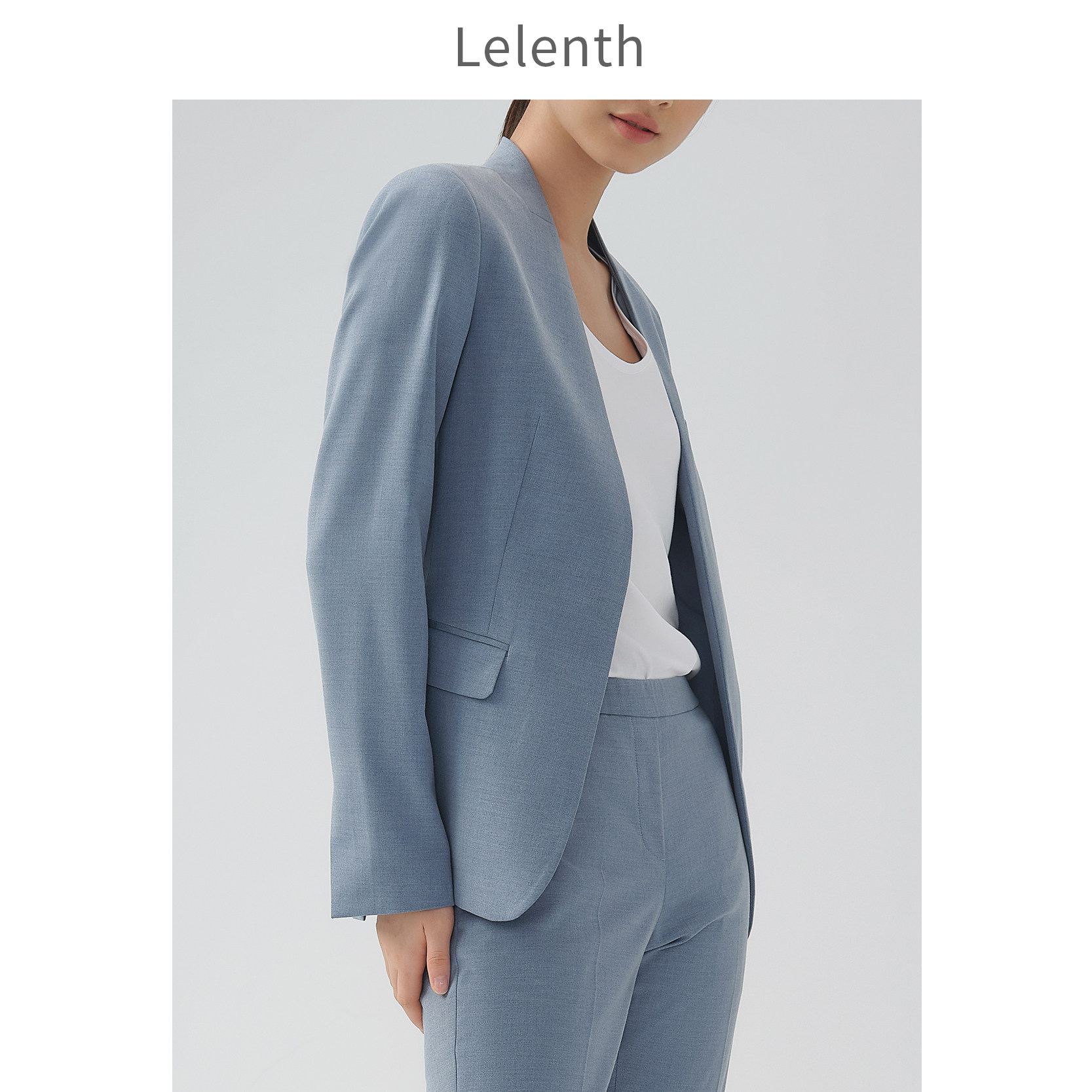 Leren Commute No Collar Suit Jacket Woman 2022 Summer New Temperament Casual Work Long Version Blue West Suit