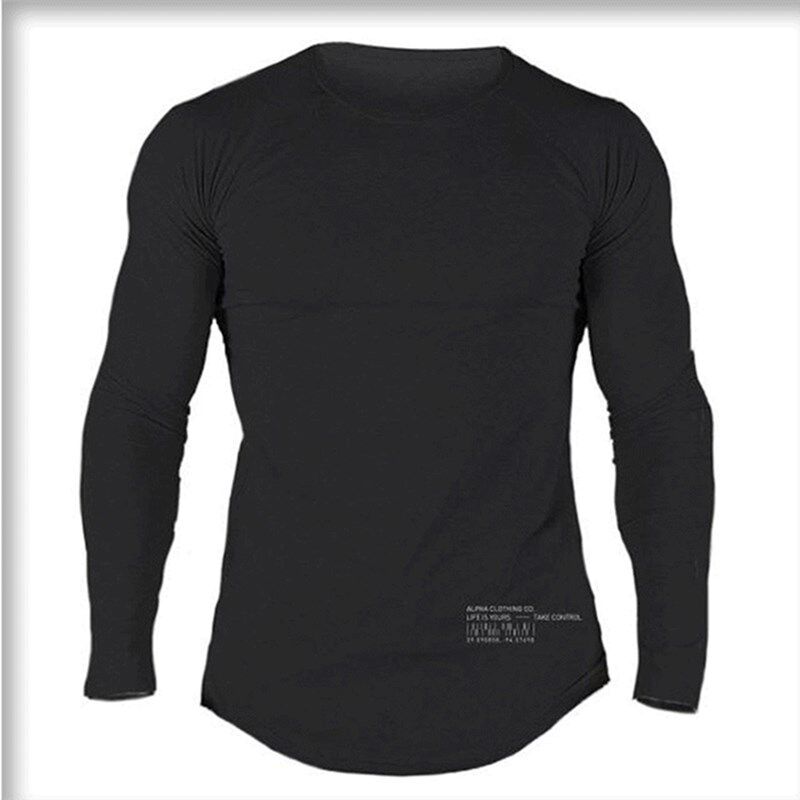Fitness clothing men's spring and autumn sports long-sleeved T-shirt muscle training three-quarter sleeves breathable tight elastic bottoming shirt top