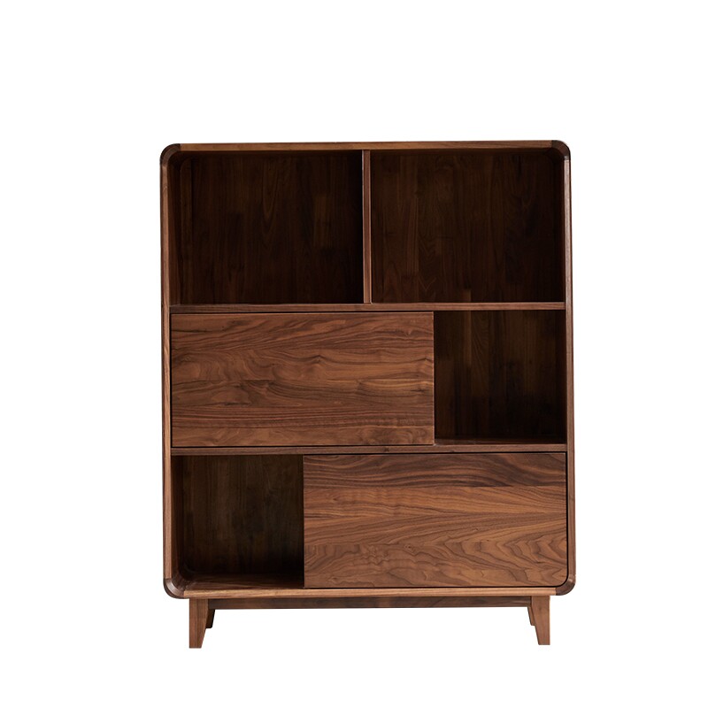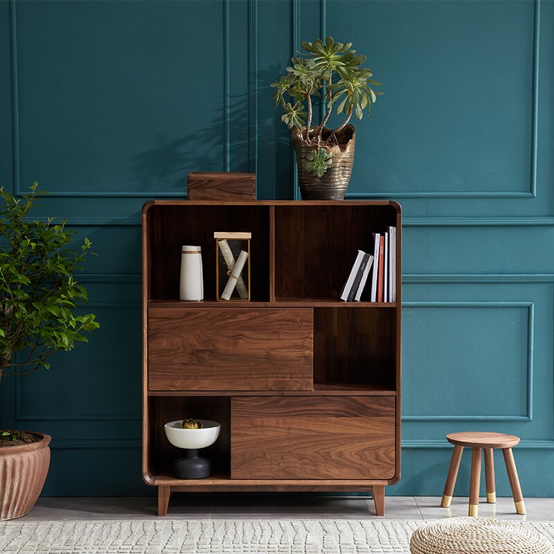 Nordic black walnut low bookcase modern all solid wood bookshelf storage storage sideboard shelf light luxury customization