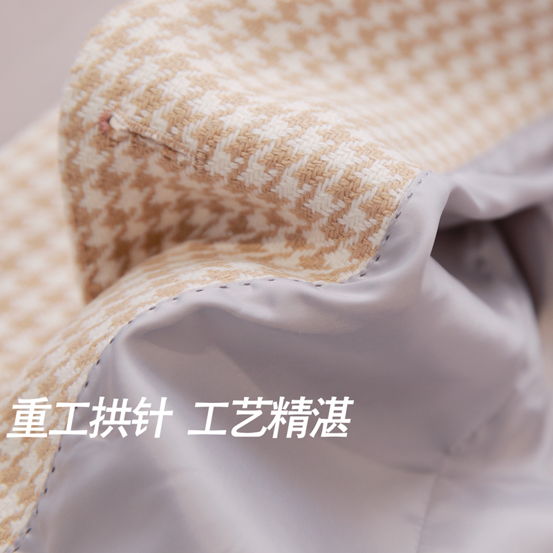 Japanese autumn and winter gentle temperament thousands of birds in a small suit jacket woman elegant with a grain of buttoned cashmere sweatshirt-Taobao