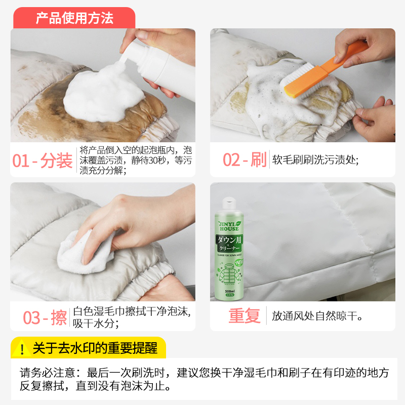 Down jacket dry agent 500ml wash wash spray to stain cleaning the stains and cleaning the scrubber