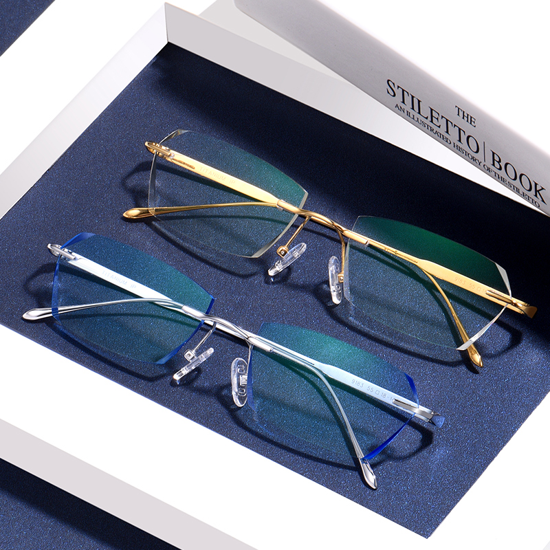Ultra light pure titanium nearsightedness glasses men without frame cut edge spectacle frame Spectacle Frame Astigmatism Flat Light Glasses Female face