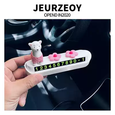 Car temporary parking number plate Cute alpaca moving car moving phone digital card creative car interior decoration