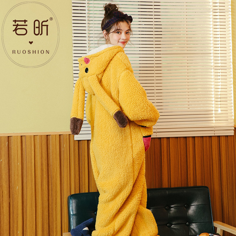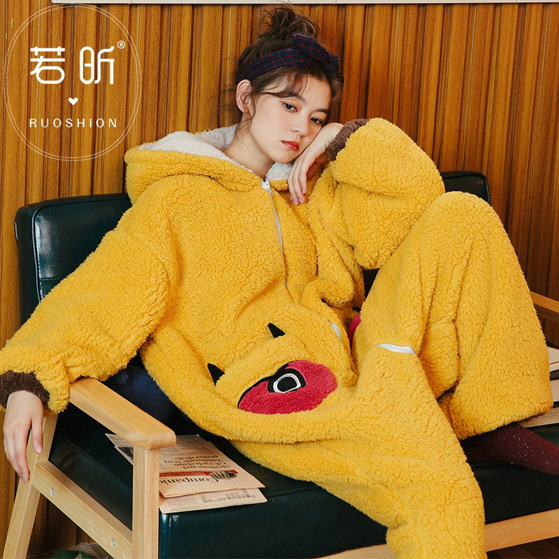 Even Body Coral Suede Pyjamas Woman Spring Autumn Winter New Cartoon Cute Cartoon Students Thickened Flannel Home Clothes