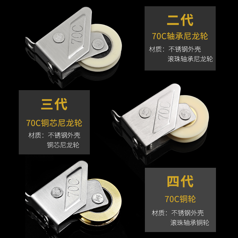 Generation of nickel plated shell bearing nylon wheels (4 clothes) Three generations of stainless steel shell copper core nylon wheels (4 clothes) Four-generation stainless steel shell bearing copper wheels (4 clothes) second-generation stainless steel shell shaft