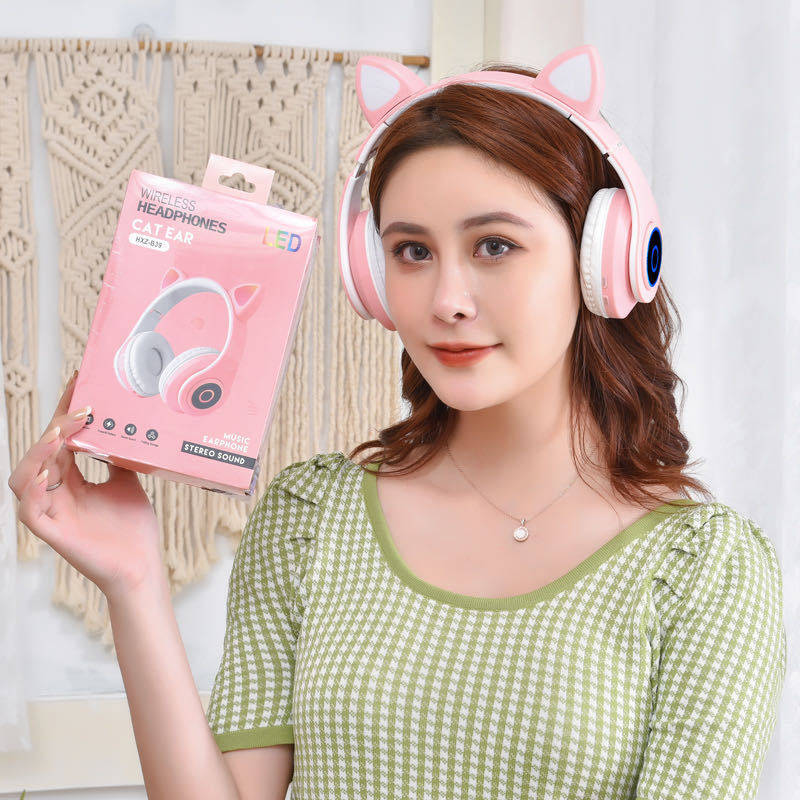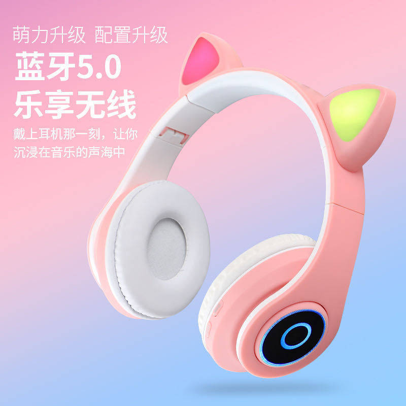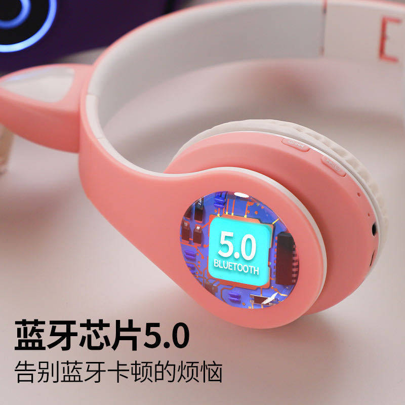 New vibrato with the same rubber cat ear bluetooth headset wireless head-mounted male and female luminous headset headset