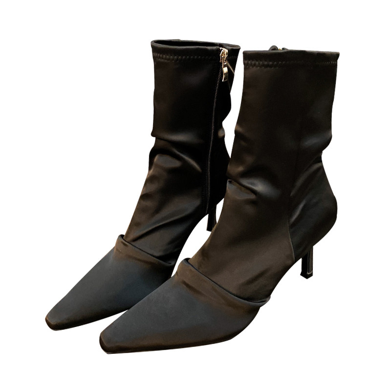 European and American pointy short boots female spring autumn single boots satin finish high heel single shoes 2022 new thin heel slim boot children