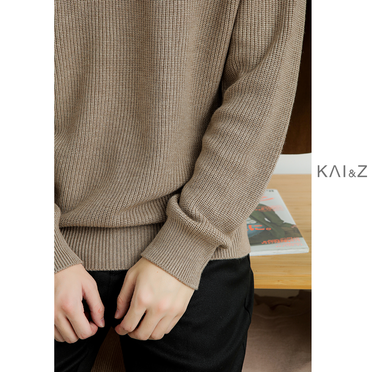 Men's wool outline knitted sweater 2020 autumn and winter new loose tide sweater almond