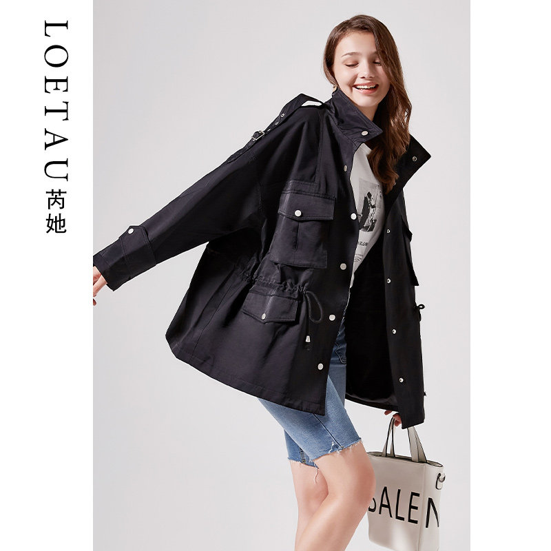 (Broken Yard clear cabin) Wind dress Women's medium long version of small casual relaxation 2021 Fall new tooling jacket