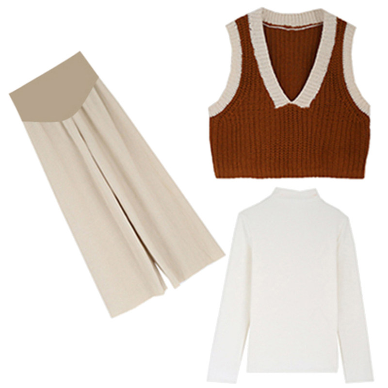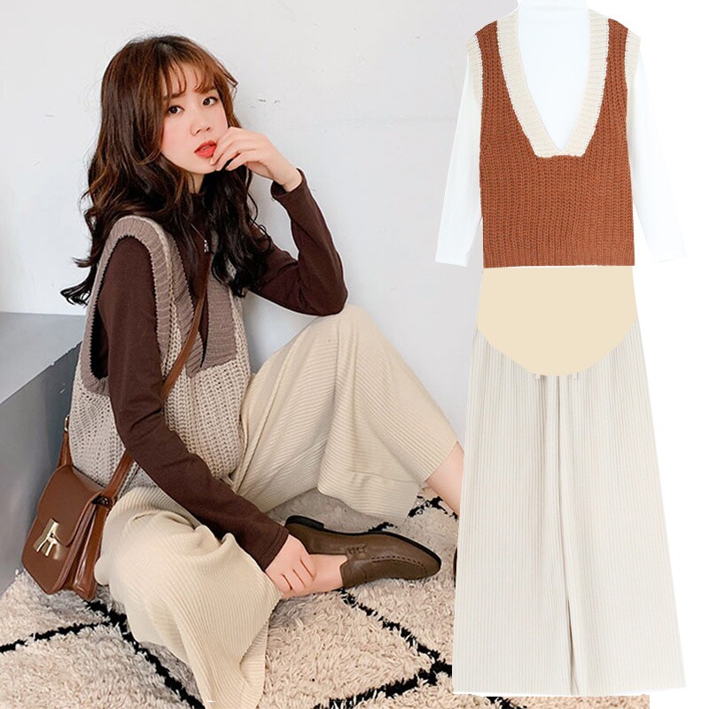 Pregnant women's autumn suit foreign style fashion high quality thin net red sweater vest autumn and winter two-piece set