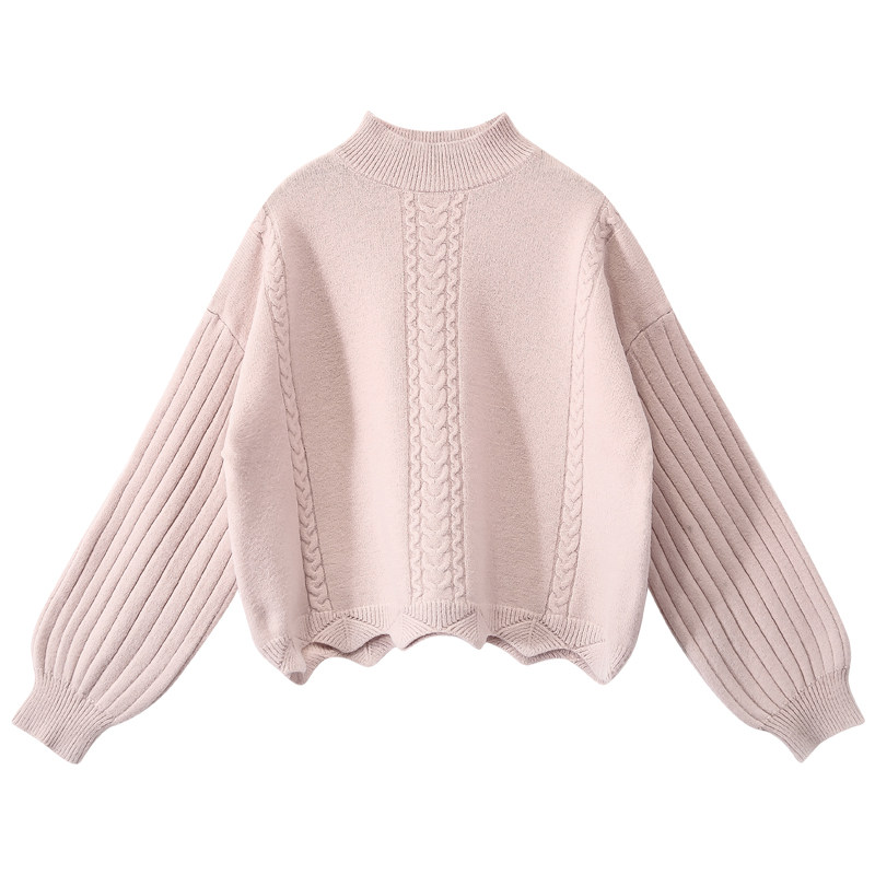 Pink half turtleneck sweater women's design sense niche 2023 autumn new lazy wind small knit sweater top