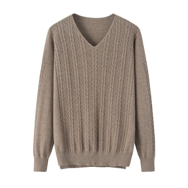 Odos City No Dyeing 100% Mountain cashmere large size V collar gallows woman long sleeve head 100 hitch cashmere sweater