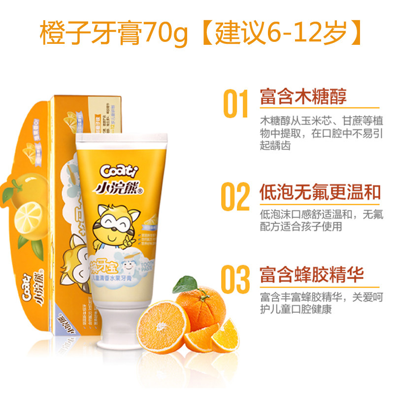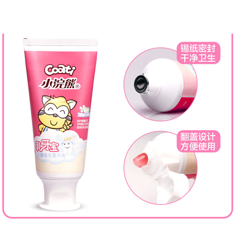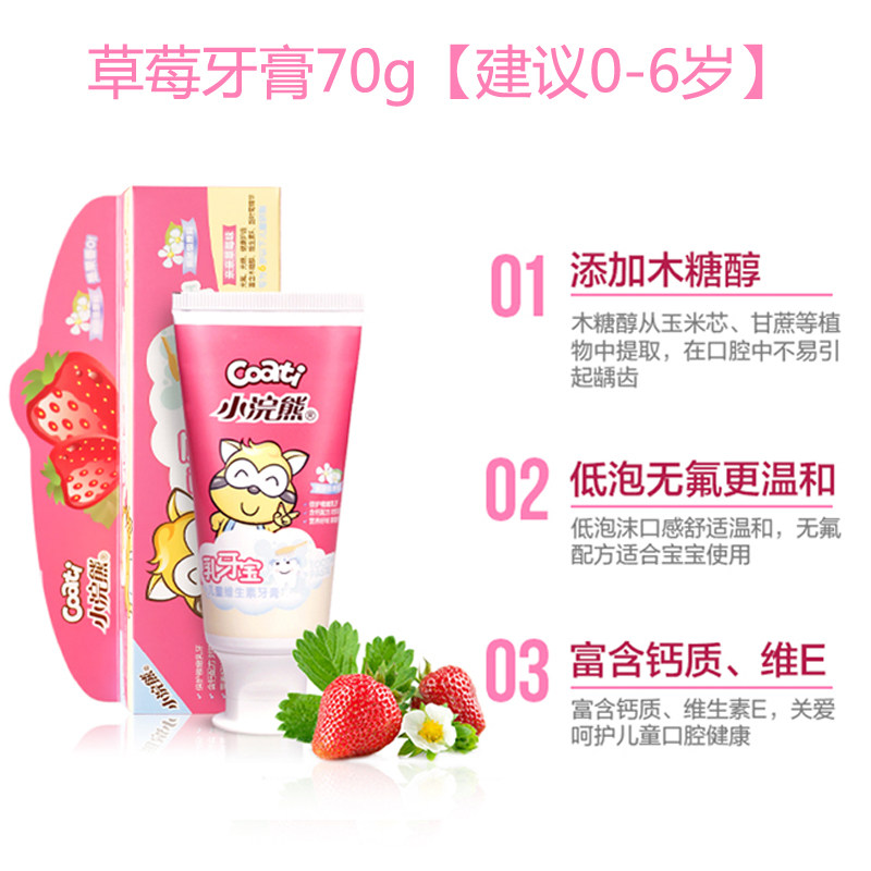 Little raccoon children's toothpaste does not contain fluoride, prevents tooth decay, dental caries, repairs 3-6-12 years old baby strawberry flavor