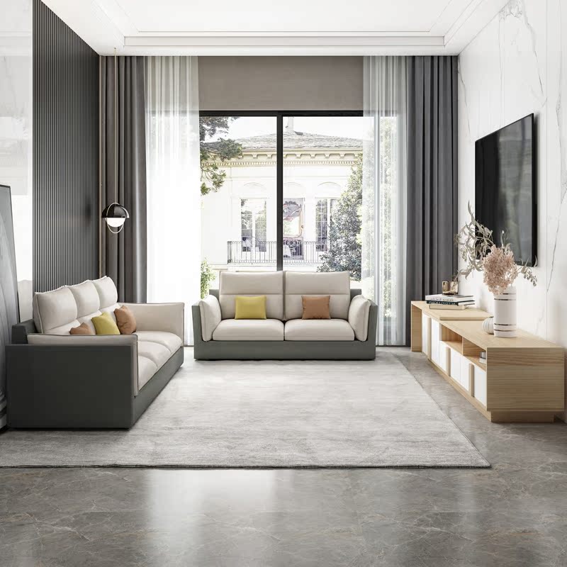 Solid wood sofa combination living room whole sofa modern small apartment chaise 123 sofa combination technology cloth sofa