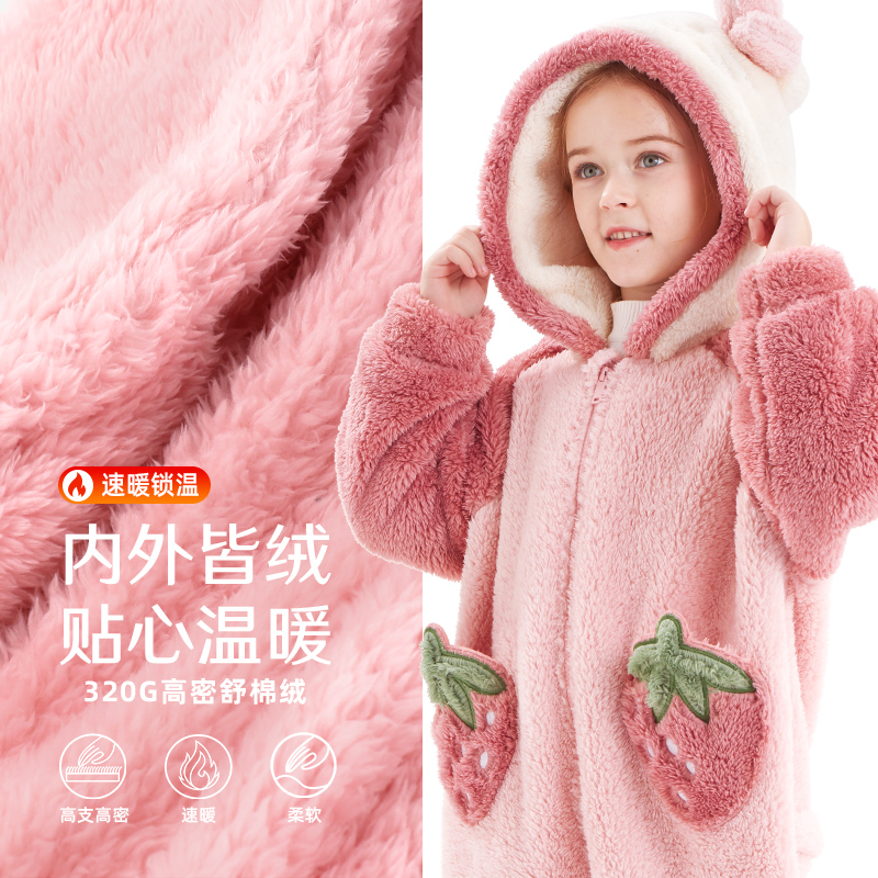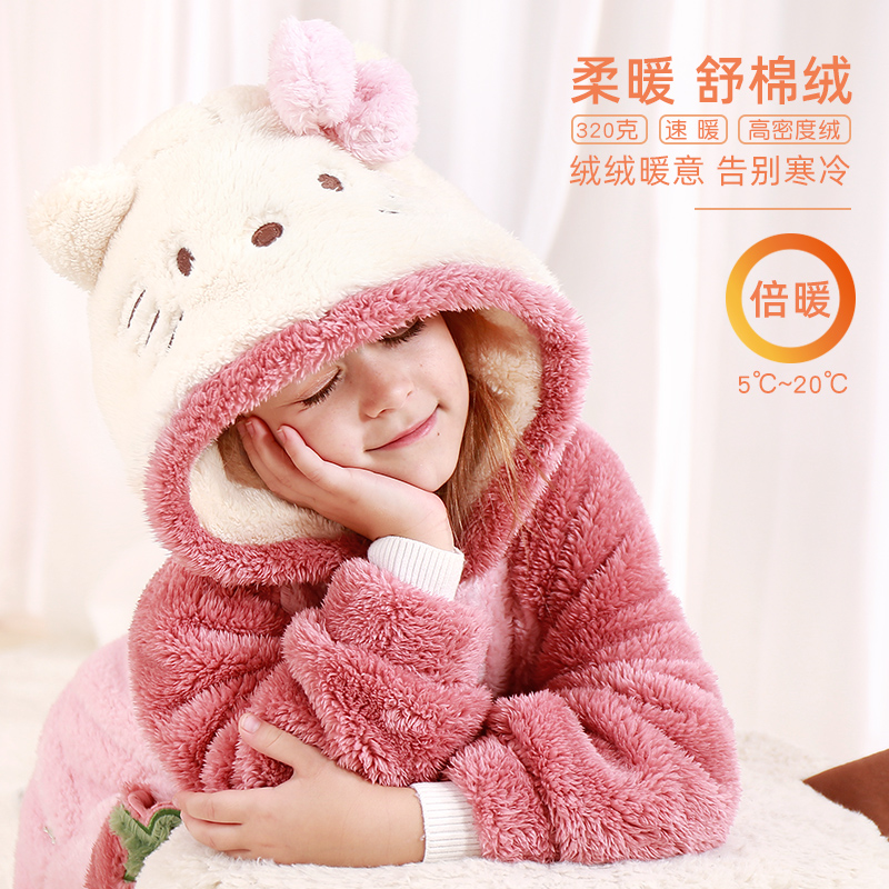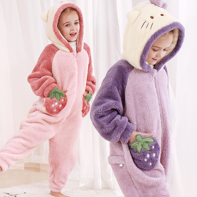 Hello Kitty Girl Pajamas One-Piece Flannel Kids Baby Fall Winter Coral Nightgown Cartoon Shaped Housewear