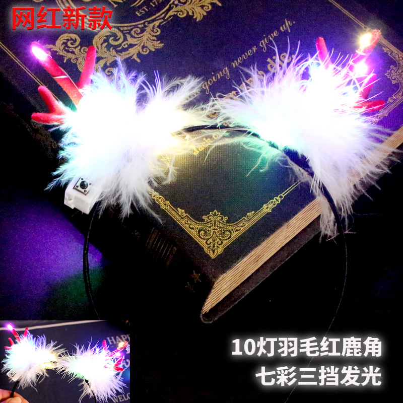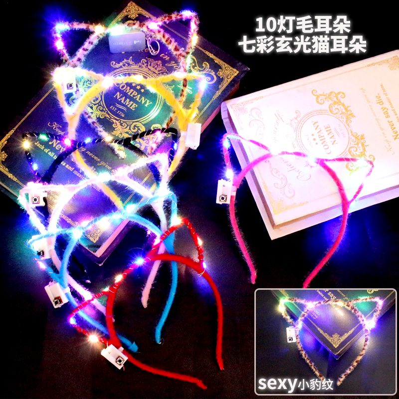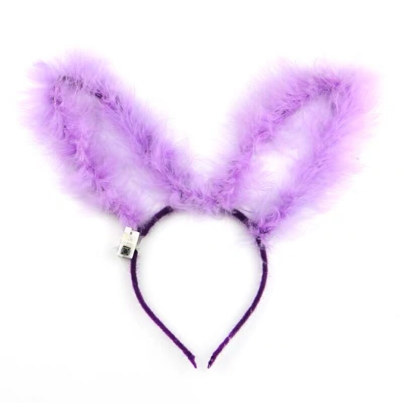 Feather luminous rabbit ears 14 lights new thickened children's headdress luminous cat ears headband night market luminous toys