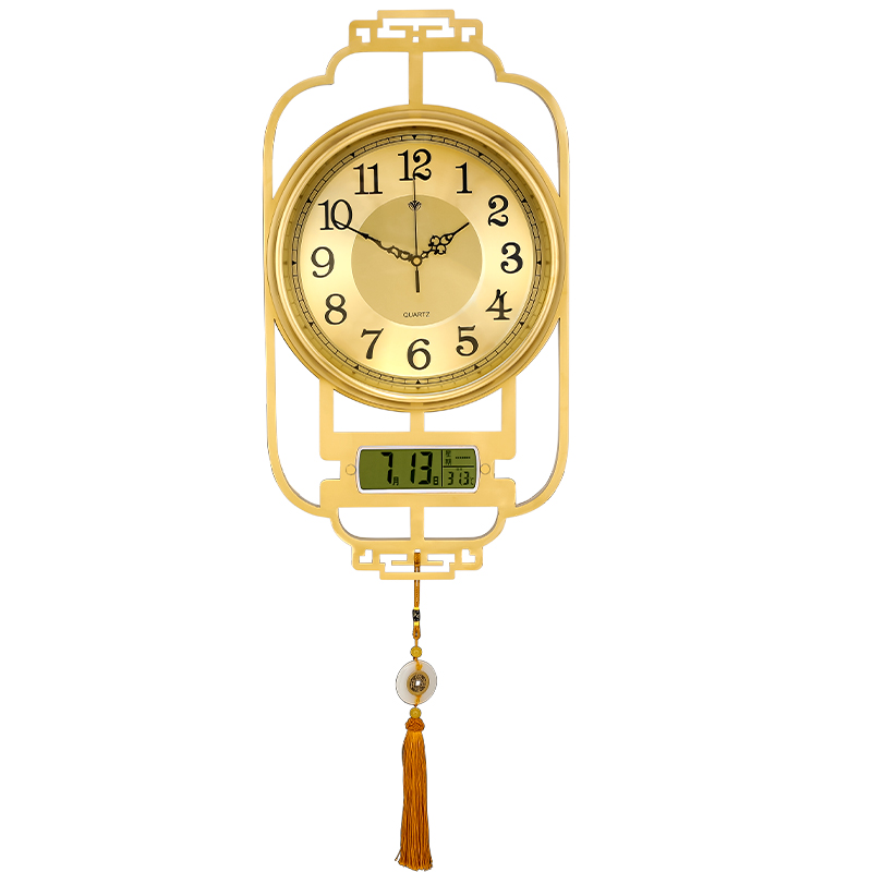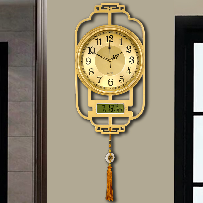 New Chinese watch Pure copper light luxury wall clock Living room household creative atmosphere Simple clock Wall hanging European style quartz clock