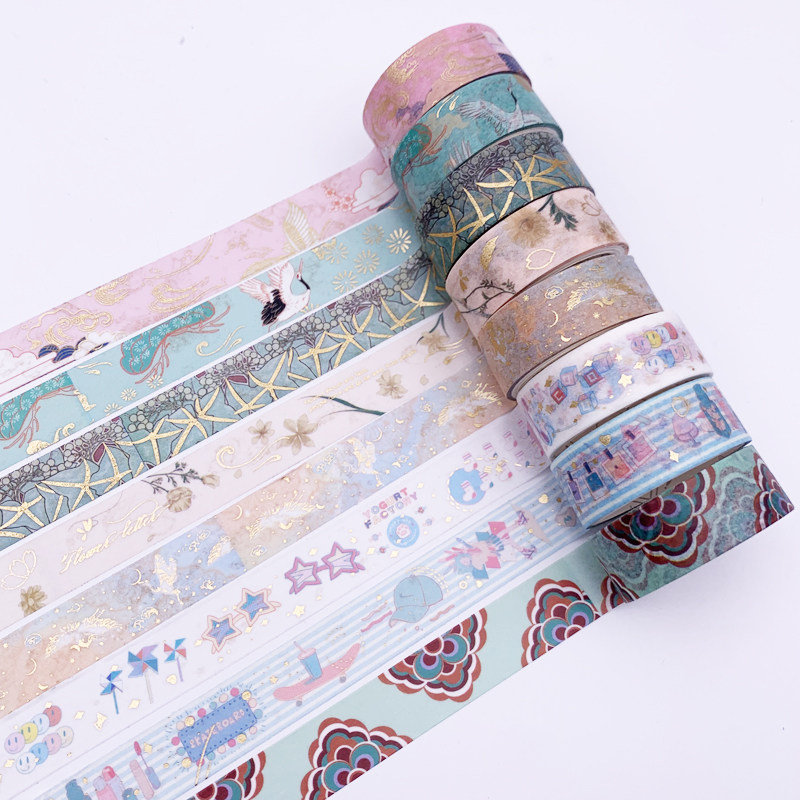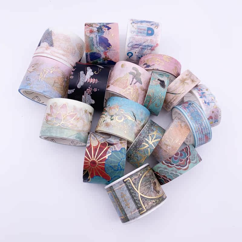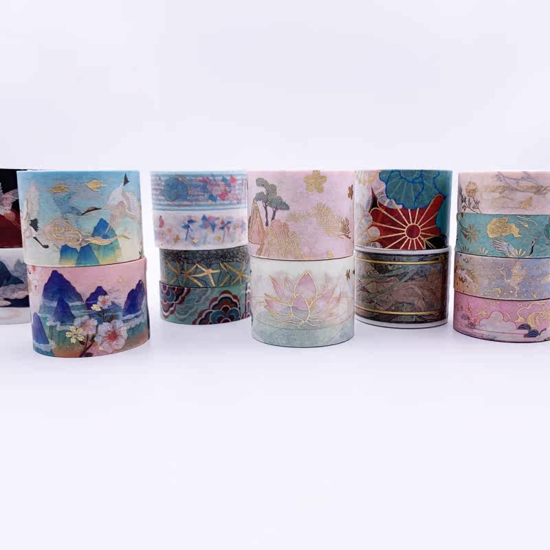 And Paper adhesive Gufeng China Wind Fairy Qi and Fairy Landscape Painting Xiangyun Crane Bronzing Gold DIY Hand Ripping Hand Ledger Decoration