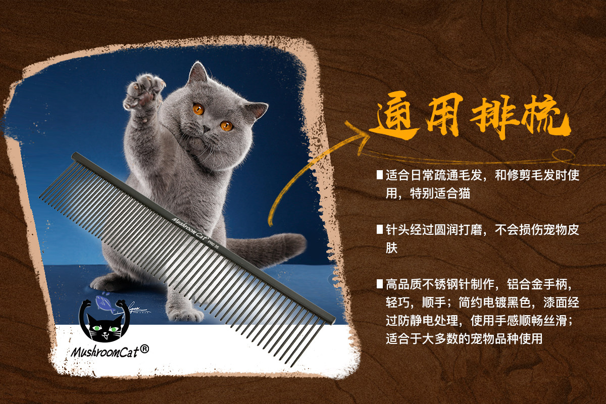 mushroom cat professional racing class beauty daily combing cat dog versatile new multi-style combed horse hair comb handle comb