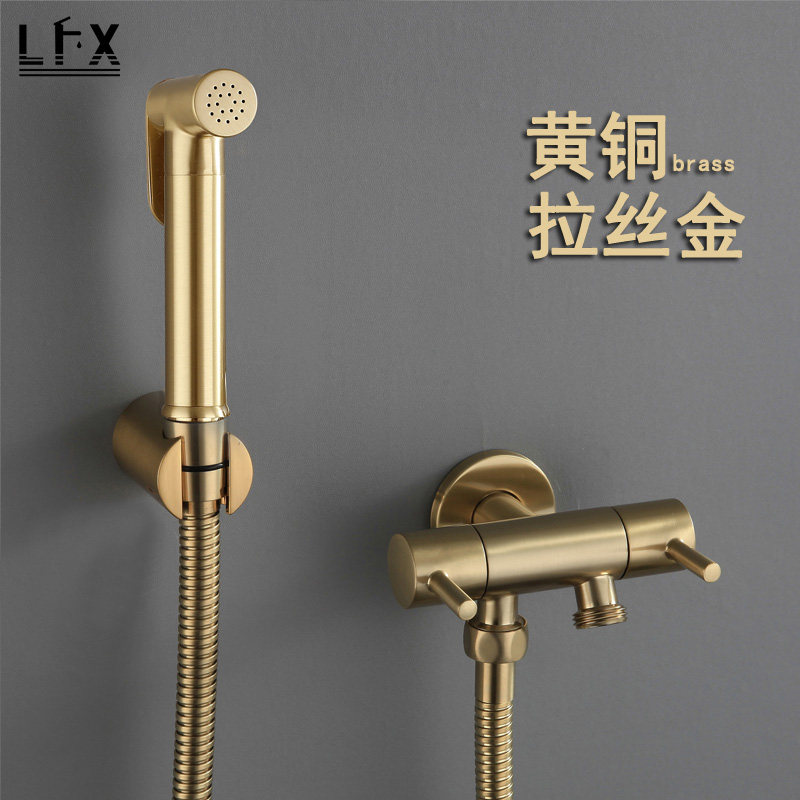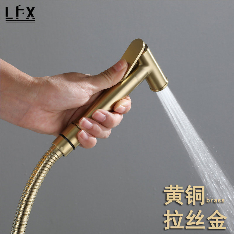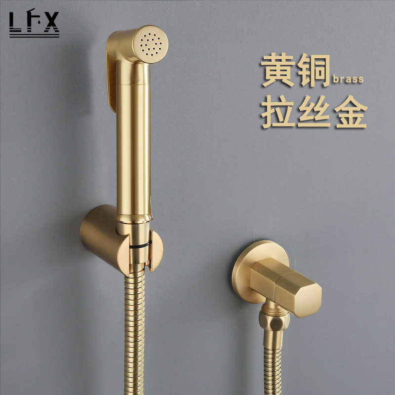 Wire Drawing Gold High-pressure Toilet Spray Gun Booster Flush Cleaner Tap Washing woman cleaner nozzle All copper European-style home