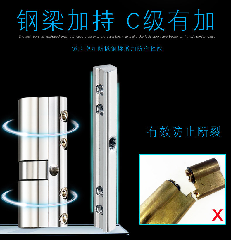 Ultra C class security door lock core D series eight gauge composite hinge sheet anti-prying lock core universal large door lock copper lock core