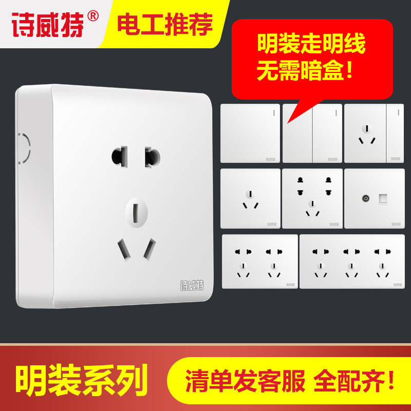 Open-mounted five-hole socket Open-mounted five-hole socket Open-mounted single-control open-mounted ten-hole socket Open-mounted fifteen-hole socket Open-mounted three-hole 16A air conditioning open-mounted seven-hole socket Open-mounted double-cut open-mounted two-hole socket