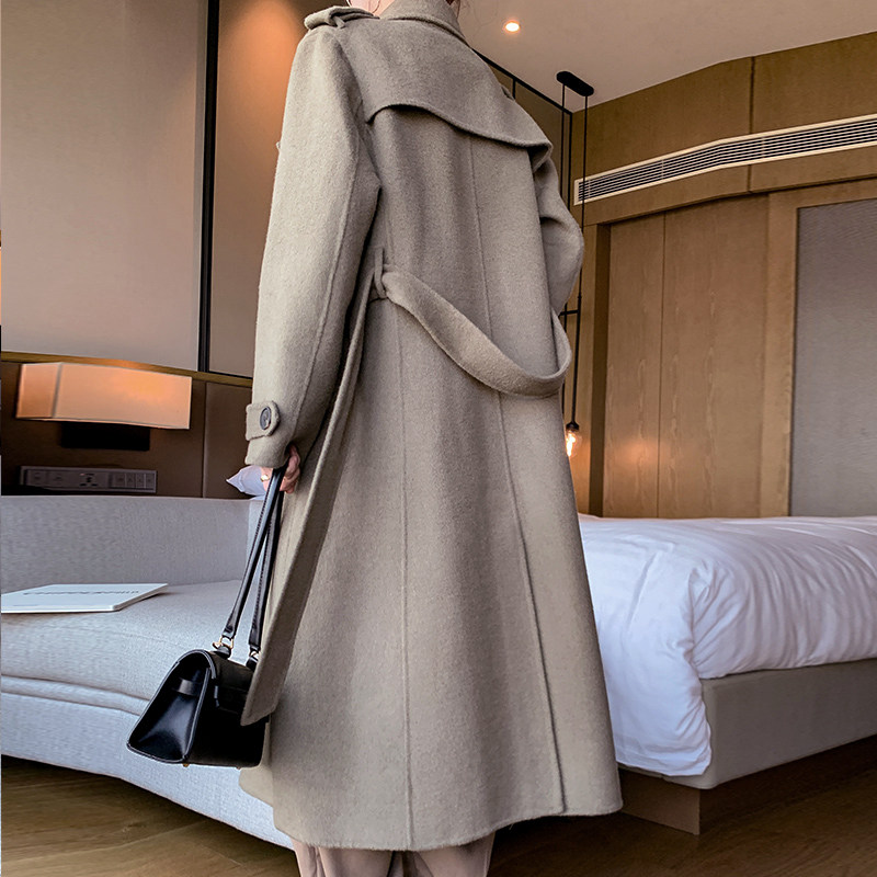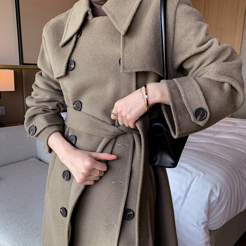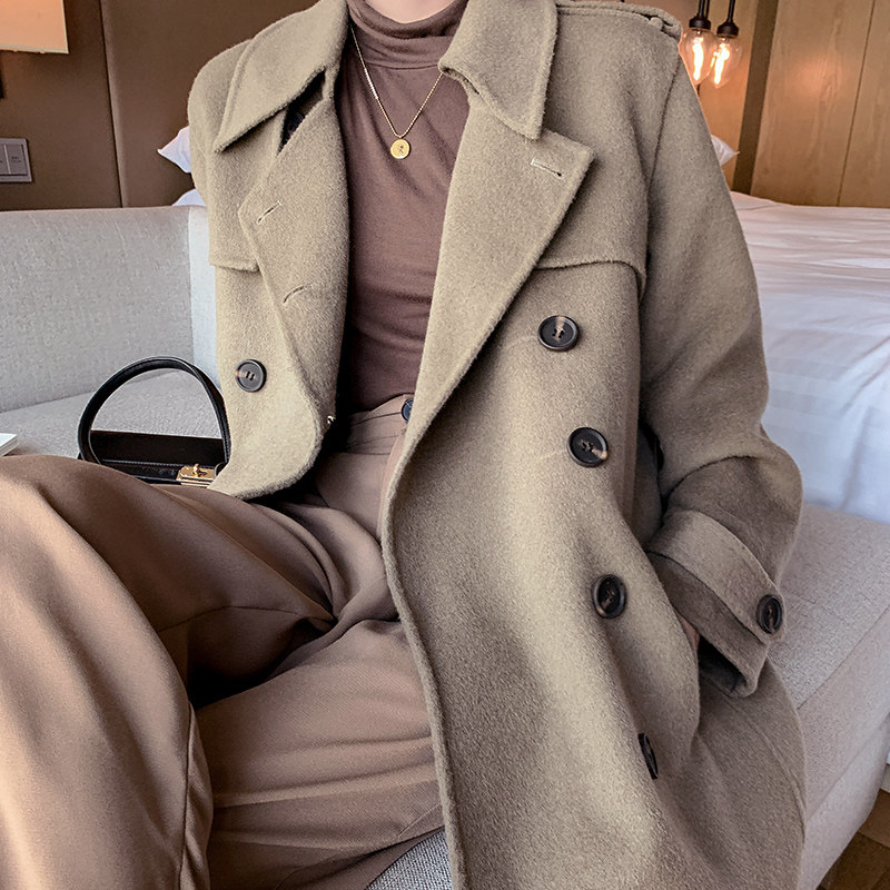 Suit collar double breasted loose Korean version wool coat new high-end double-sided cashmere coat women's medium-long version
