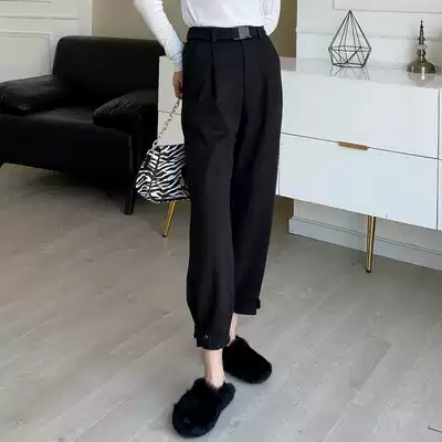 European station 2020 Autumn and Winter new ladies woolen pants children high waist thin texture Haren pants Joker ankle-length pants
