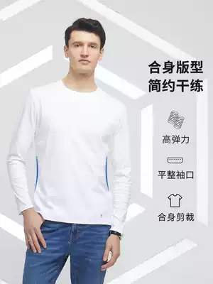 White small t long-sleeved T-shirt men's spring and autumn pure Xinjiang long-sleeved cotton slim white T-shirt round neck sports T-shirt bottoming shirt
