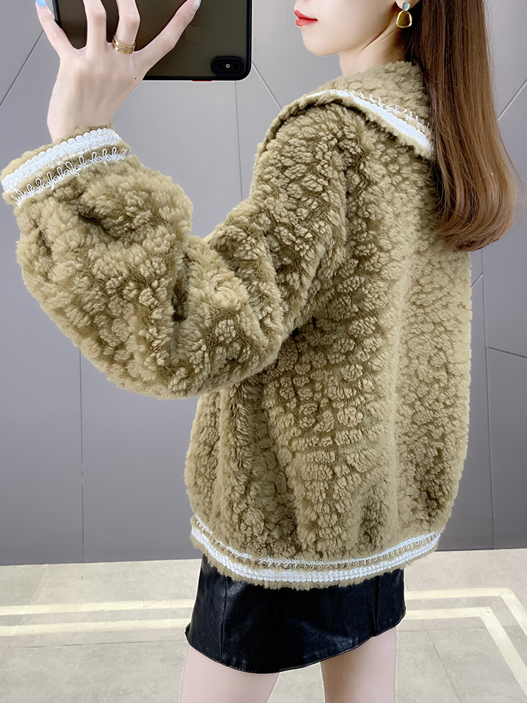 Lamb wool coat women's grain sheep shearling coat short 2022 winter new composite fur one Haining fur