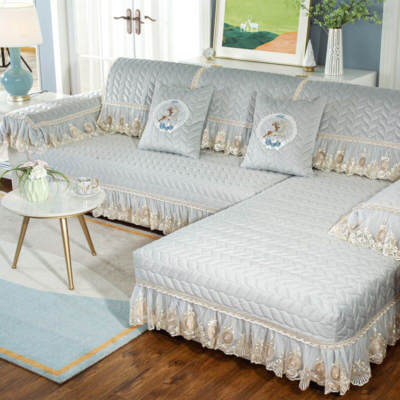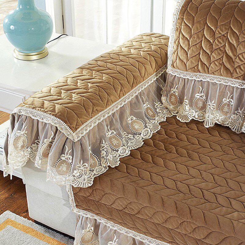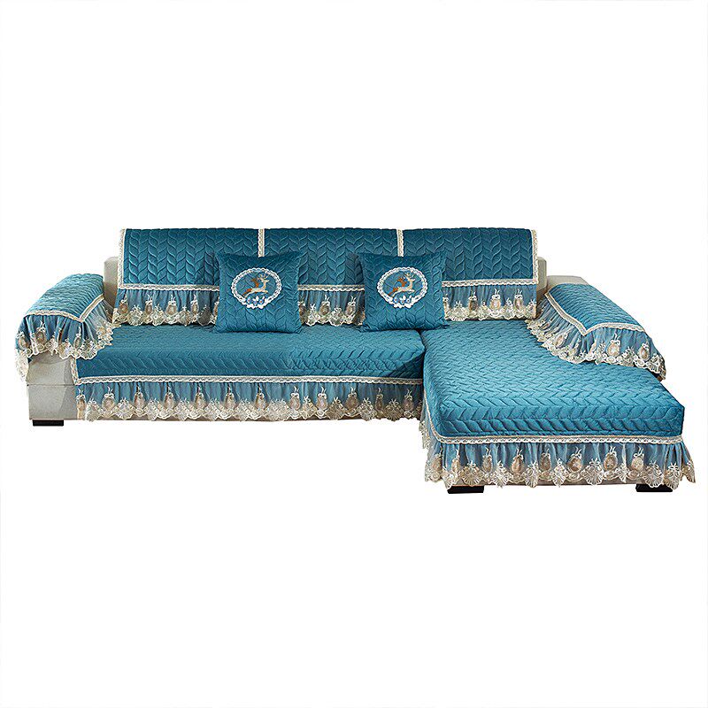 European-style high-grade winter thickened plush sofa cushion solid color non-slip leather sofa cover universal all-inclusive chaise longue custom