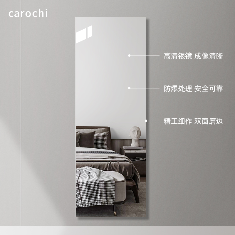 Frameless full-length mirror HD mirror Bedroom full-length mirror Hanging full-length mirror Right angle wall-mounted mirror Decorative mirror can be customized