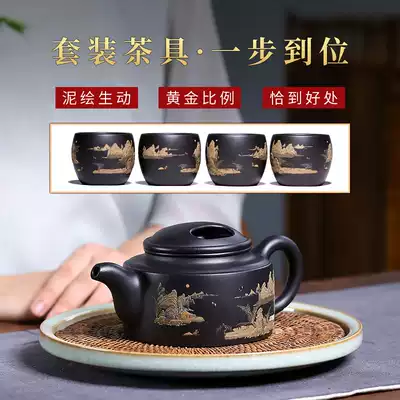 Yixing famous pure handmade purple clay pot large capacity household tea pot kung fu tea set landscape pot single small cup set