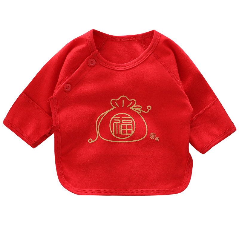 Newborn semi-backed spring and autumn red boneless clothes newborn monk clothing baby full moon single top