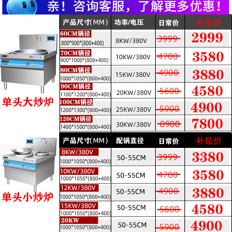 Qinxi High Power Commercial Induction Cooktop 15KW Induction Cooktop Commercial Hotel Cafeteria Dining Hall 20kw Big Stir-fry