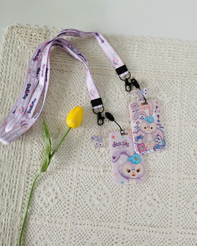 Purple Rabbit Documents Cutting Sleeve Super-Beautiful Hanging Rope Documents Sleeve Cartoon Student Certificate of Work Permit Access Bus Card Card