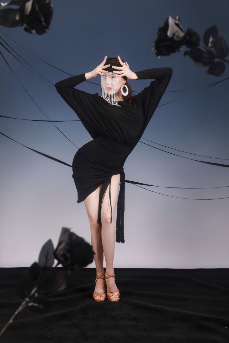 Betty Latin Dance Dress Foreign Dress Long Sleeve Dance Dress Rehearsage Suit New Adult Stream Suo Skirt BD01