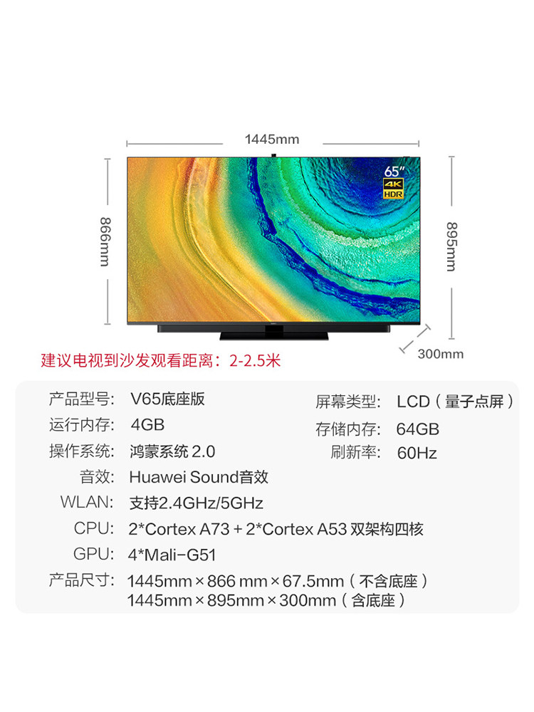 Huawei Smart Screen V65-inch 4K ultra-high-definition quantum dot full-screen Hongmeng flat-panel LCD TV official