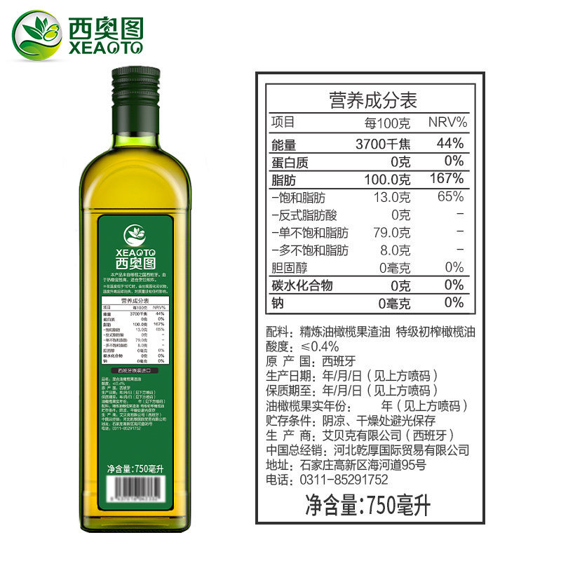 Siottu Imported Oil Cooking Oil Low Fitness Meal Reduction 750mlx2 Bottled Fat Contains Extra Virgin Olive Oil
