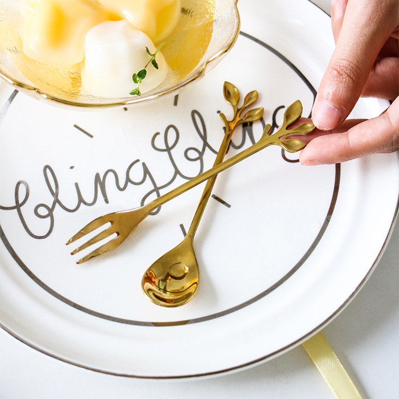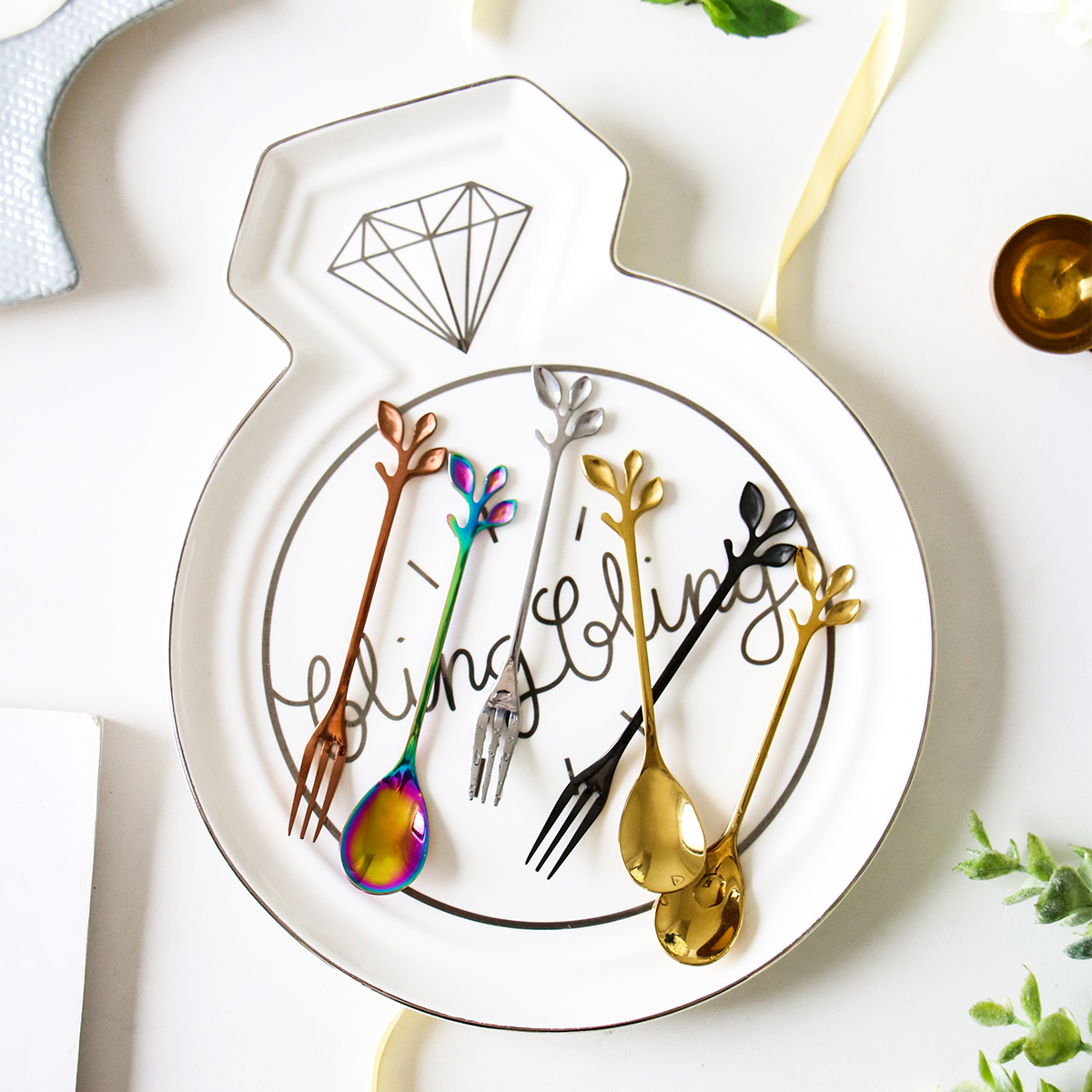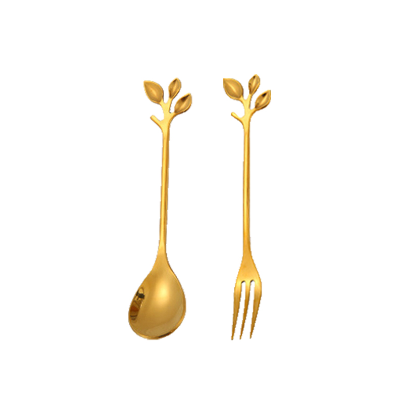 A golden leaf spoon with a silver leaf spoon loaded with a gold leaf spoon with a rose gold leaf spoon a fantastic purple leaf spoon with a silver leaf fork loaded with a golden leaf fork