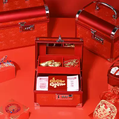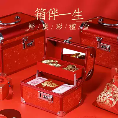 Engagement supplies Daquan cai li qian shou shi he zi gifts Sanjin hardware box marriage dowry gift box hand