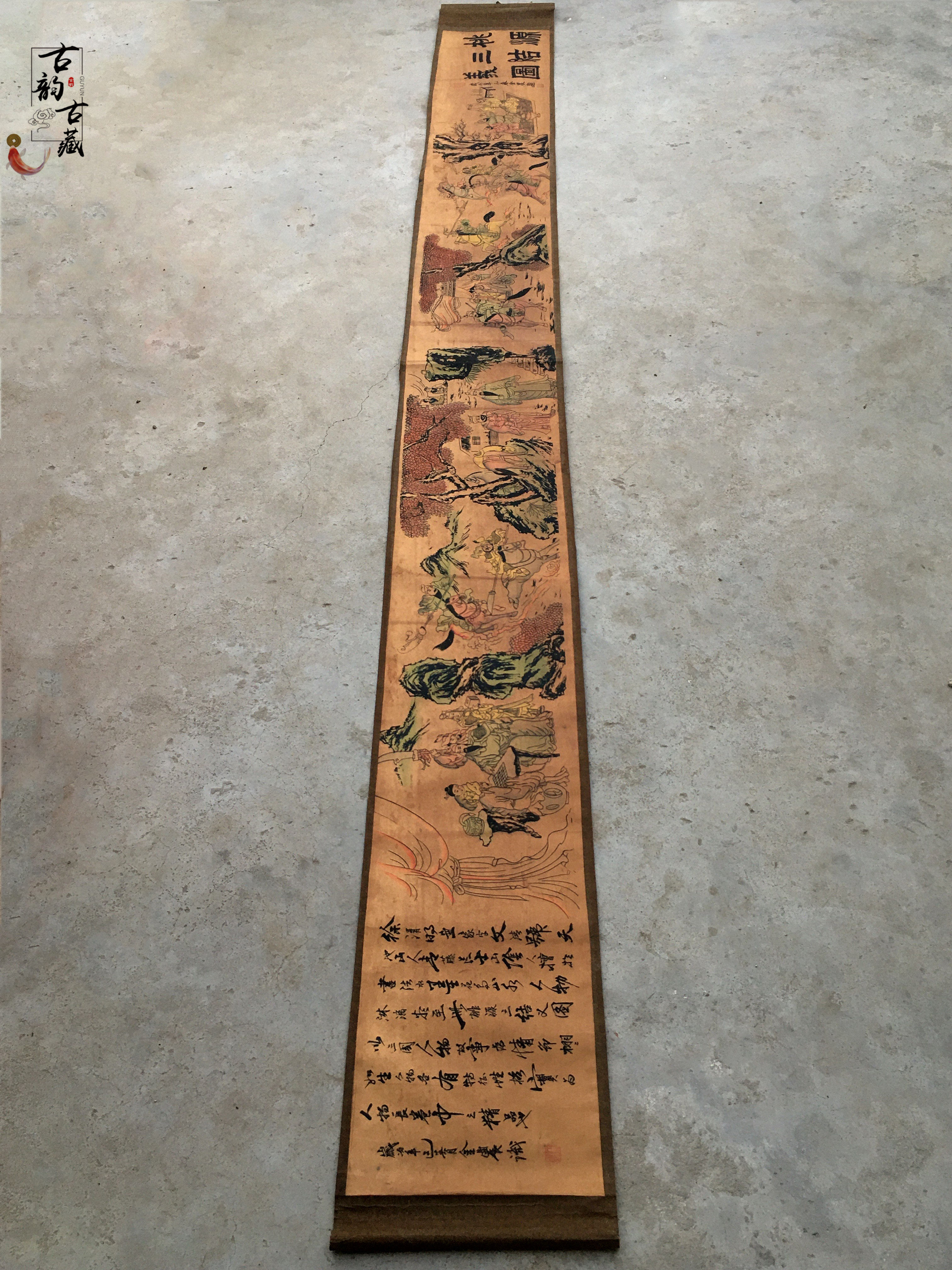 Three-meter-long figure ancient painting Taoyuan Sanjie yi long scroll painting antique home decoration silk ancient picture scroll painting