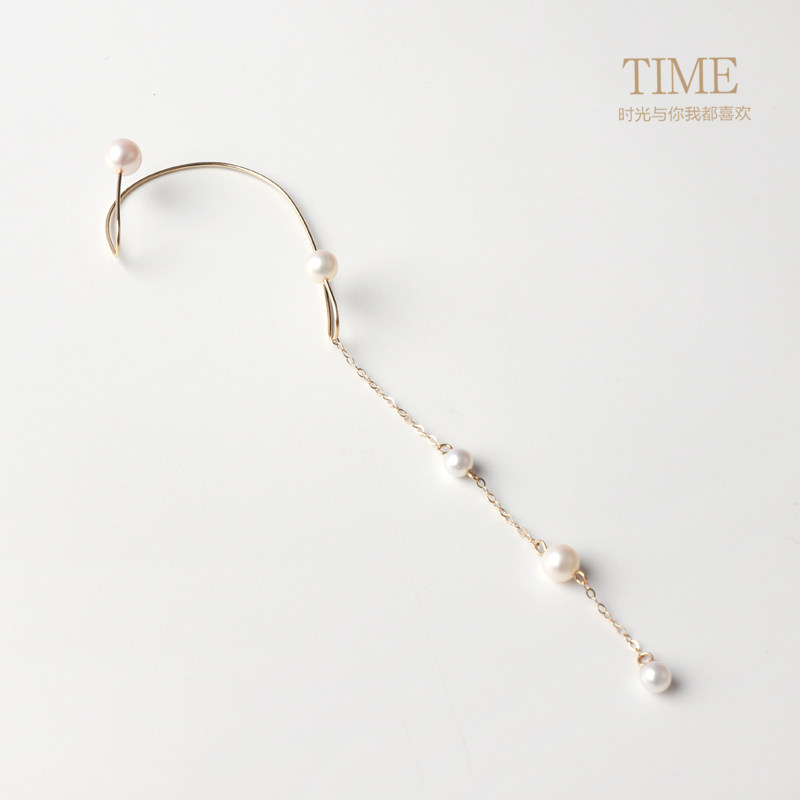 TIME original no need for pierced gypsophila pearl ear clips long version show face thin ear-hook ear-hook tassel earrings