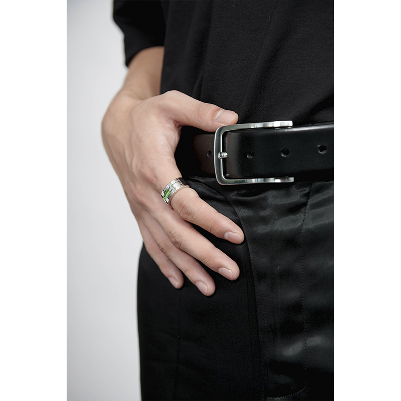 Tide WOO Exclusive TERRAINCOGNITAG Series Metal Silver Buckle Retro Head Layer Cow Leather Leather Belt 100 lap